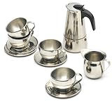 This gourmet coffee/espresso combination pack from Imusa, the leading brand of Hispanic cookware includes a 6 cup stainless steel coffeemaker, a stainless steel creamer without cover and 4 stainless steel cup and saucer set. It is packed into one box and ready to make an enjoyable coffee day.